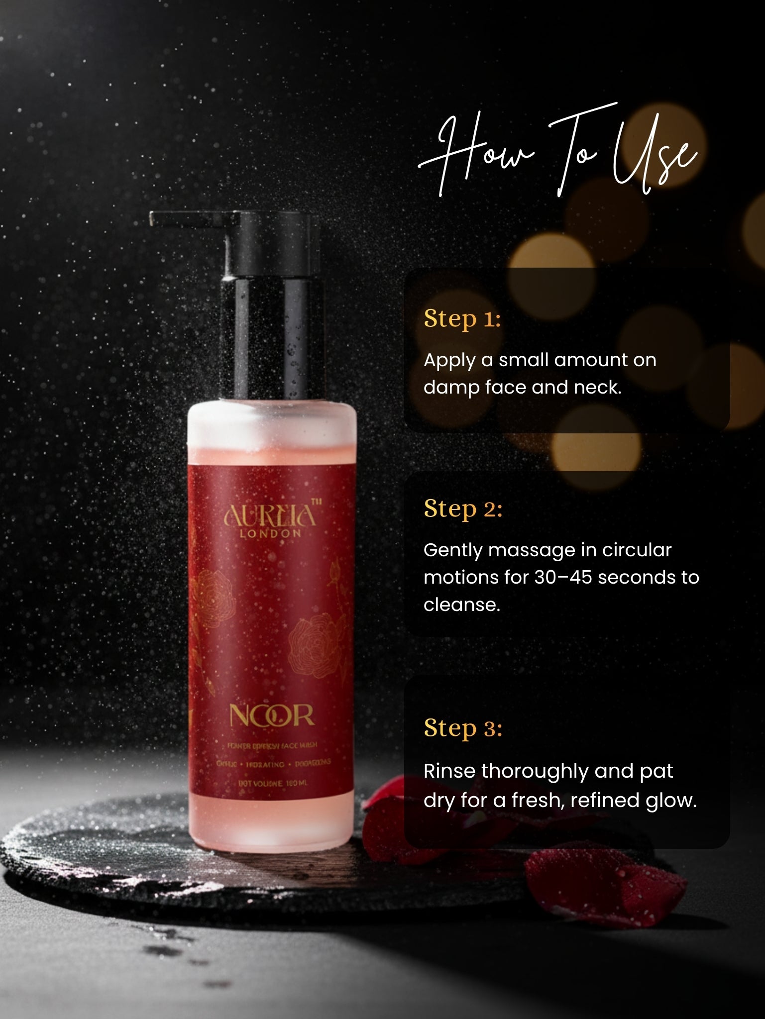 - Use morning and evening on damp skin.