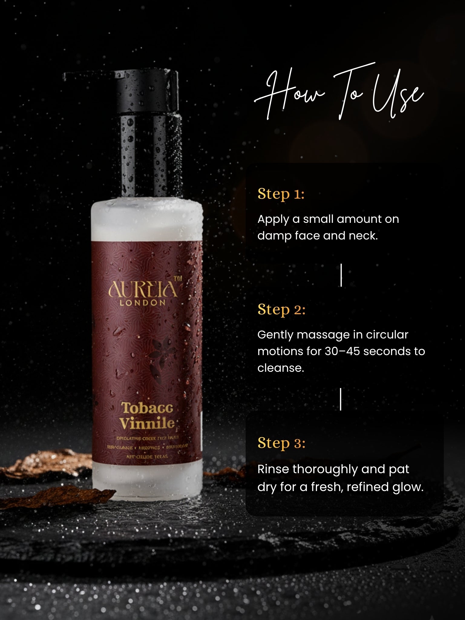 - AM/PM, apply to damp face. Massage 30–60 seconds, avoiding the eye area.